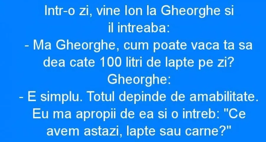 BANCUL ZILEI | „Măi, Gheorghe, cum dă vaca ta atâta lapte?”