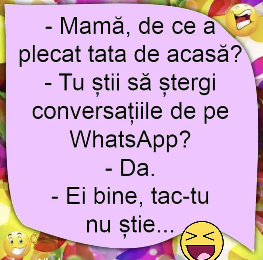 Vezi și: BANCUL ZILEI | ,,INTRU ÎN CASĂ ȘI O GĂSESC PE SOȚIE CU AMANTA MEA”