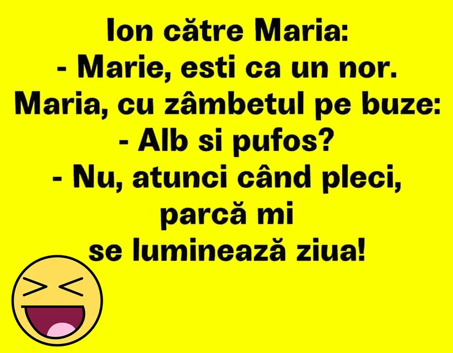 Este zi de weekend, așa că tot ce avem de făcut este să ne relaxăm. Iar pentru a aduce zâmbetul pe buze, am pregătit un banc care cu siguranță o să te amuze copios. Protagoniștii de astăzi sunt Ion și Maria. Cei doi au o discuție hilară.
