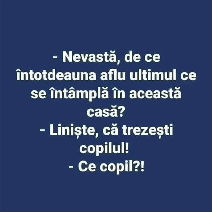 – Nevastă, de ce întotdeauna aflu ultimul ce se întâmplă în această casă?