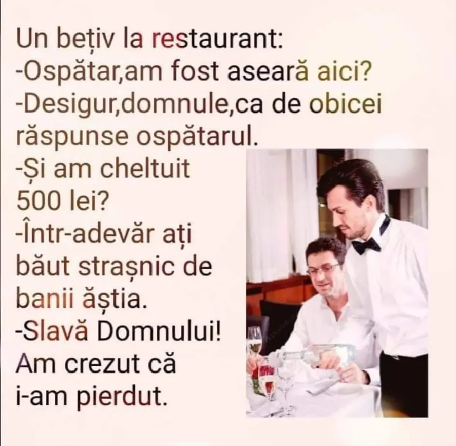 BANCUL ZILEI | „Ospătar, am fost aseară aici?”
