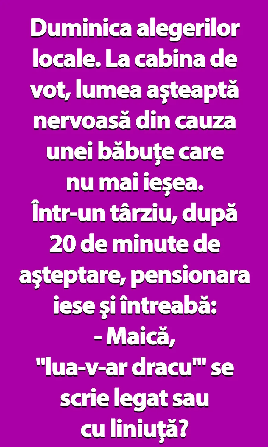 – Maică, „lua-v-ar dracu'” se scrie legat sau cu liniuță?