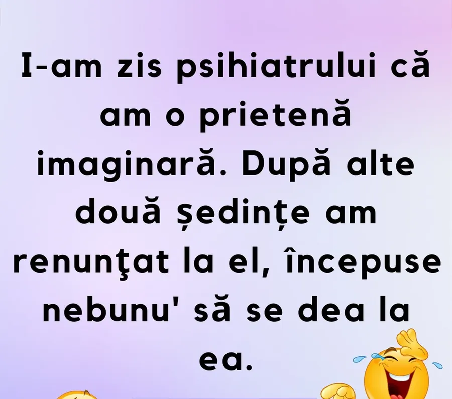 I-am zis psihiatrului că am o prietenă imaginară. După alte două ședințe am renunțat la el, începuse nebunu’ să se dea la ea.