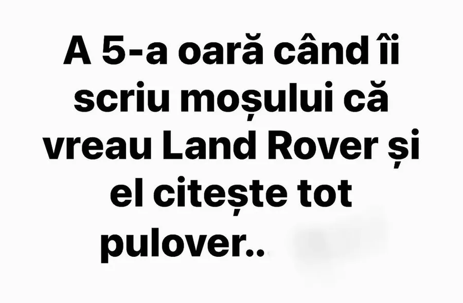 A cincea oară când îi scriu moșului că vreau Land Rover și el citește tot pulover…