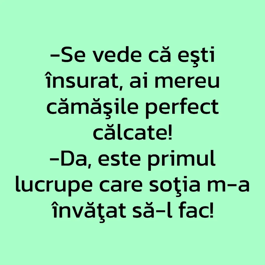 – Se vede că ești însurat, ai mereu cămășile perfect călcate!