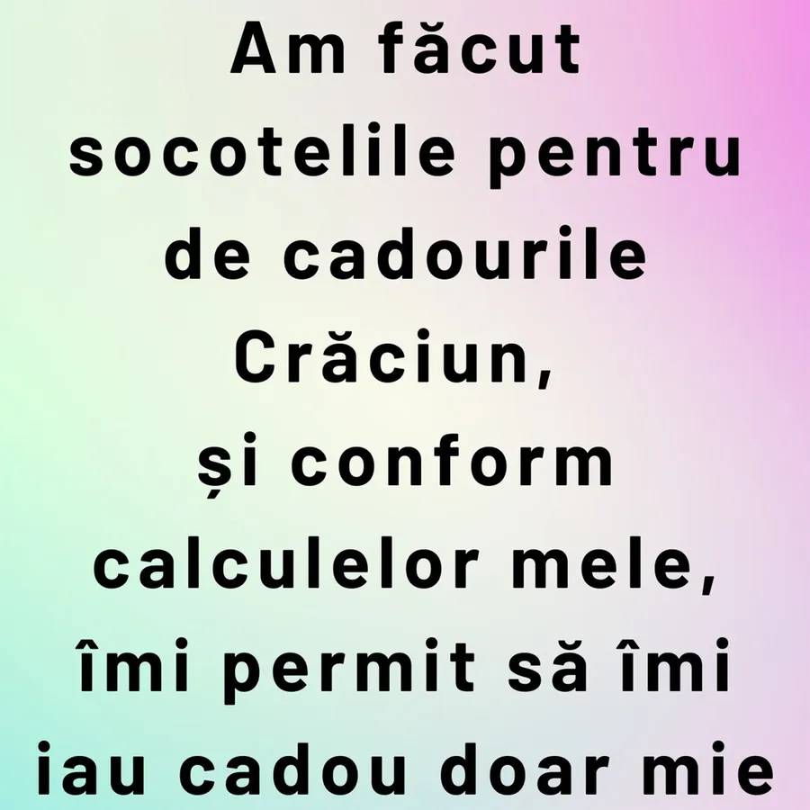 Am făcut socotelile pentru de cadourile Crăciun, şi conform calculelor mele, îmi permit să îmi iau cadou doar mie.