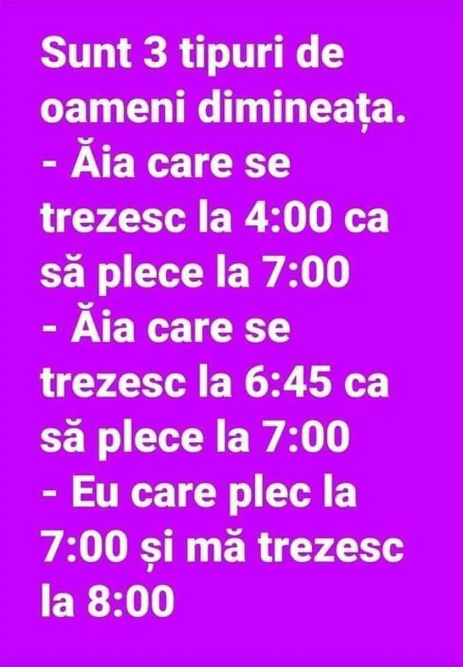 - Ăia care se trezesc la 6:45 ca să plece la 7:00