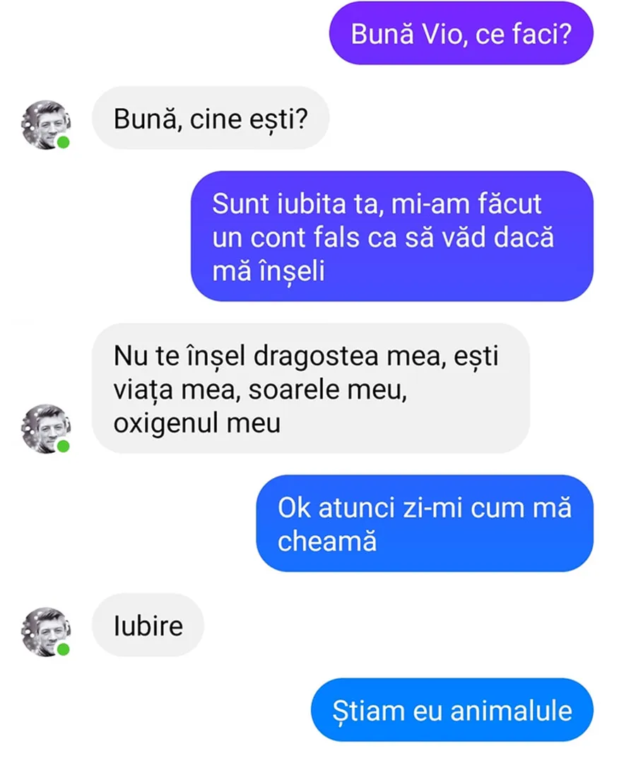 Sunt iubita ta, mi-am făcut un cont fals ca să văd dacă mă înșeli.