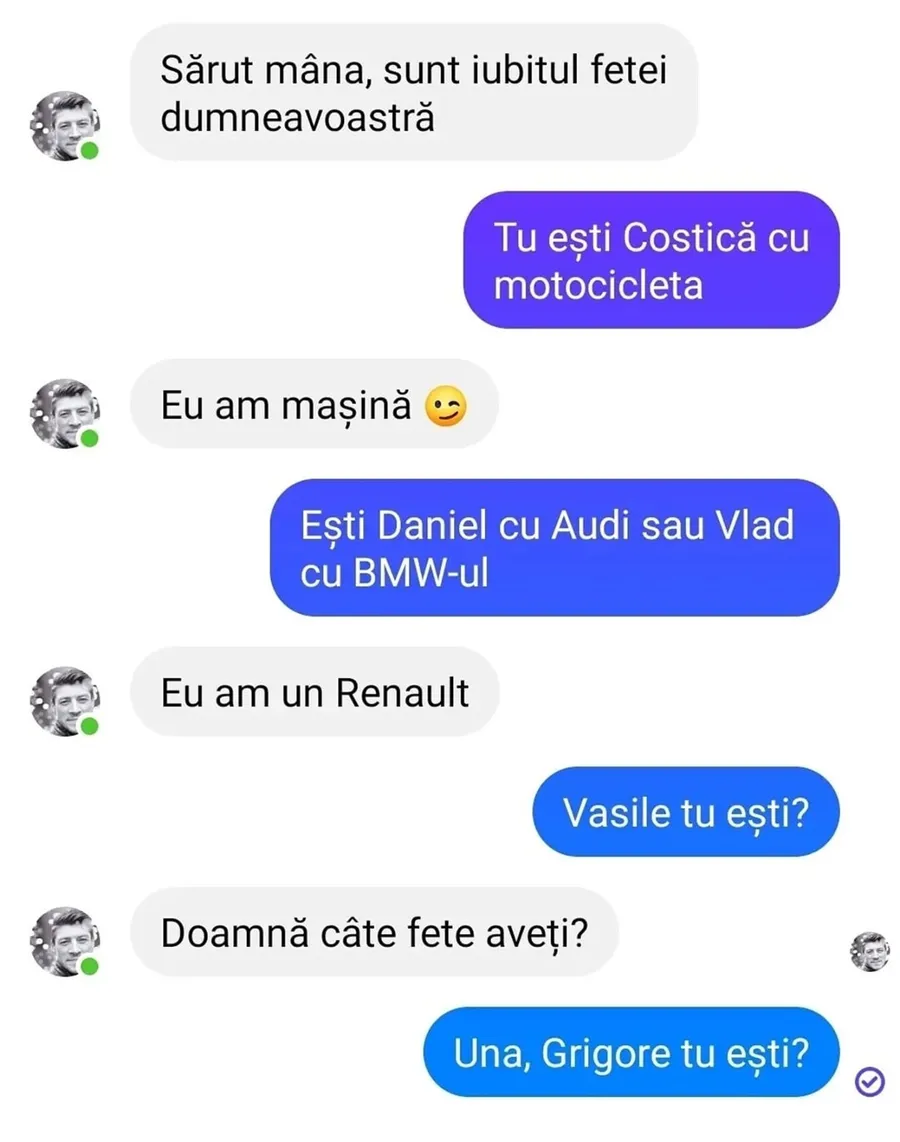 – Bună Iustina, acum două săptămâni am ieșit împreună și după ce ne-am simțit foarte bine mi-ai cerut 200 de lei. Nu îți ceream banii înapoi, dar acum am rămas și eu fără. Poți săptămâna asta să mi-i dai?