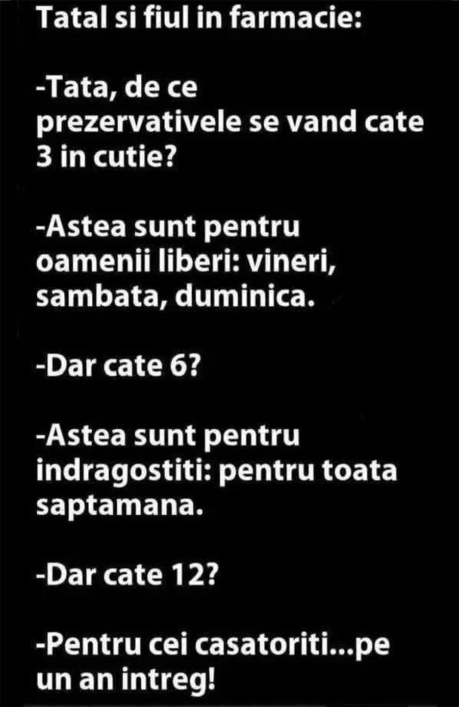 O nouă zi, o nouă glumă savuroasă! Dacă vrei să ai parte de o zi plină de râsete și voie bună, atunci iată un banc amuzant ce-ți va aduce zâmbetul pe buze. Așadar, CANCAN.RO vă prezintă o glumă cu adevărat bună.