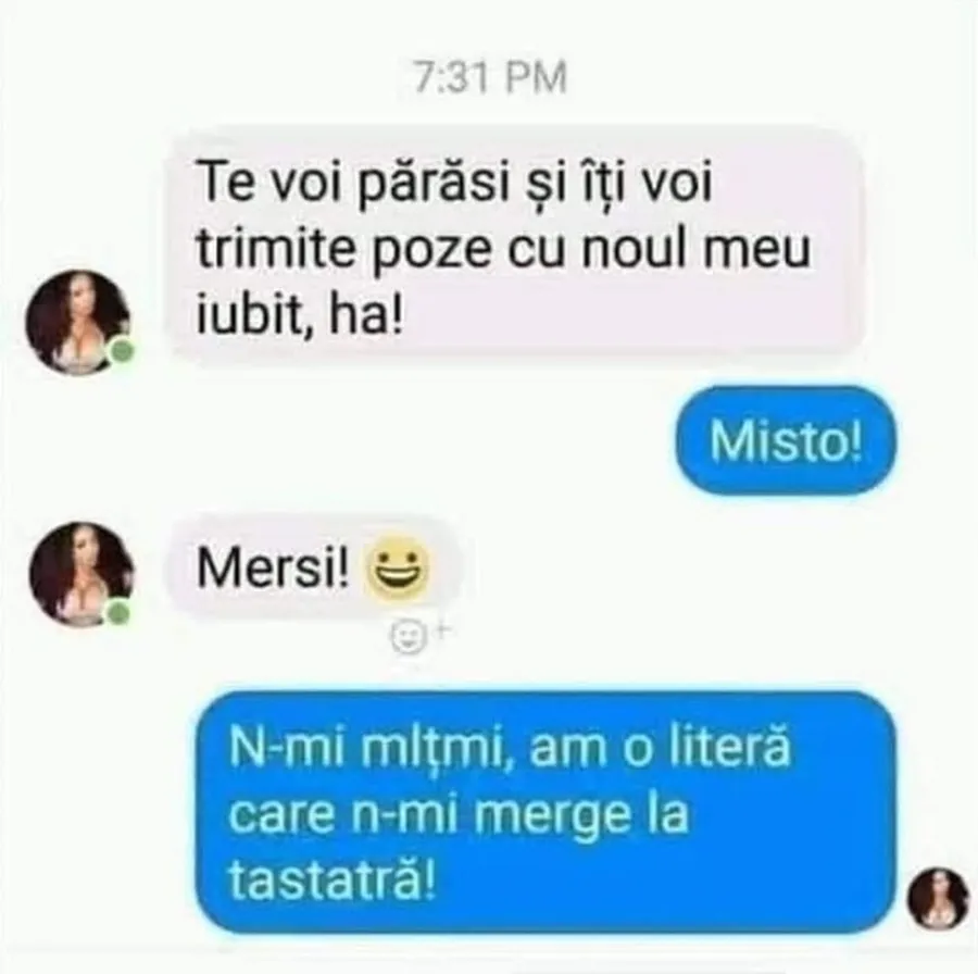 -N-mi mlțmi, am o literă care n-mi merge la tastatură!”