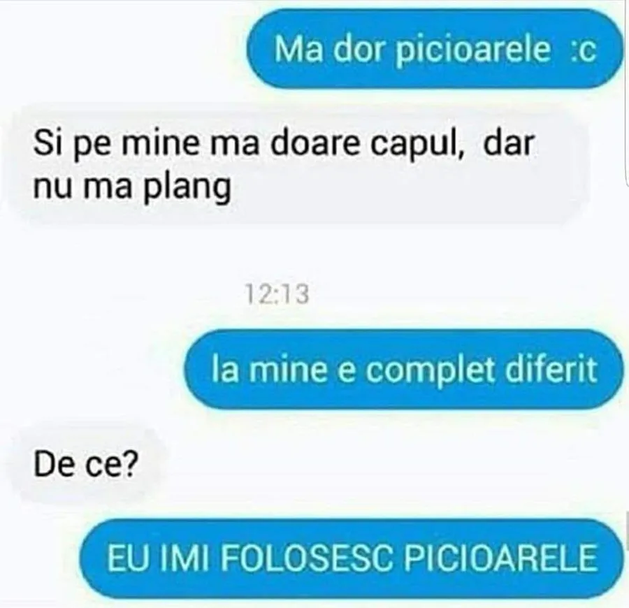 – Și pe mine mă doare capul, dar nu mă plâng.