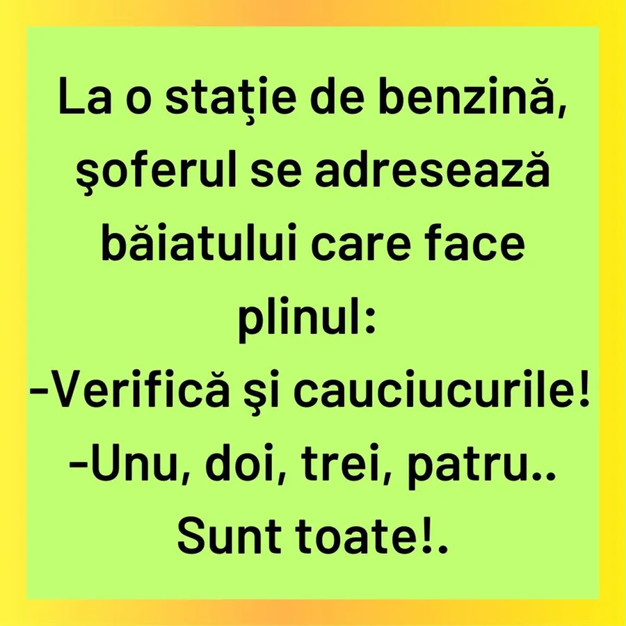 Bancurile fac parte din cultura fiecărui popor și au darul de a aduce zâmbete chiar și în cele mai grele momente. Spuse între prieteni, la birou, în familie sau la diverse ocazii, ele reușesc să destindă atmosfera și să creeze legături prin râs. Redacția CANCAN.RO vă aduce zâmbetul pe buze în această dimineață și vă ajută să vă amuzați pentru o nouă zi. Indiferent de temă, bancurile rămân o formă simplă și savuroasă de divertisment, pe care oricine o poate împărtăși.