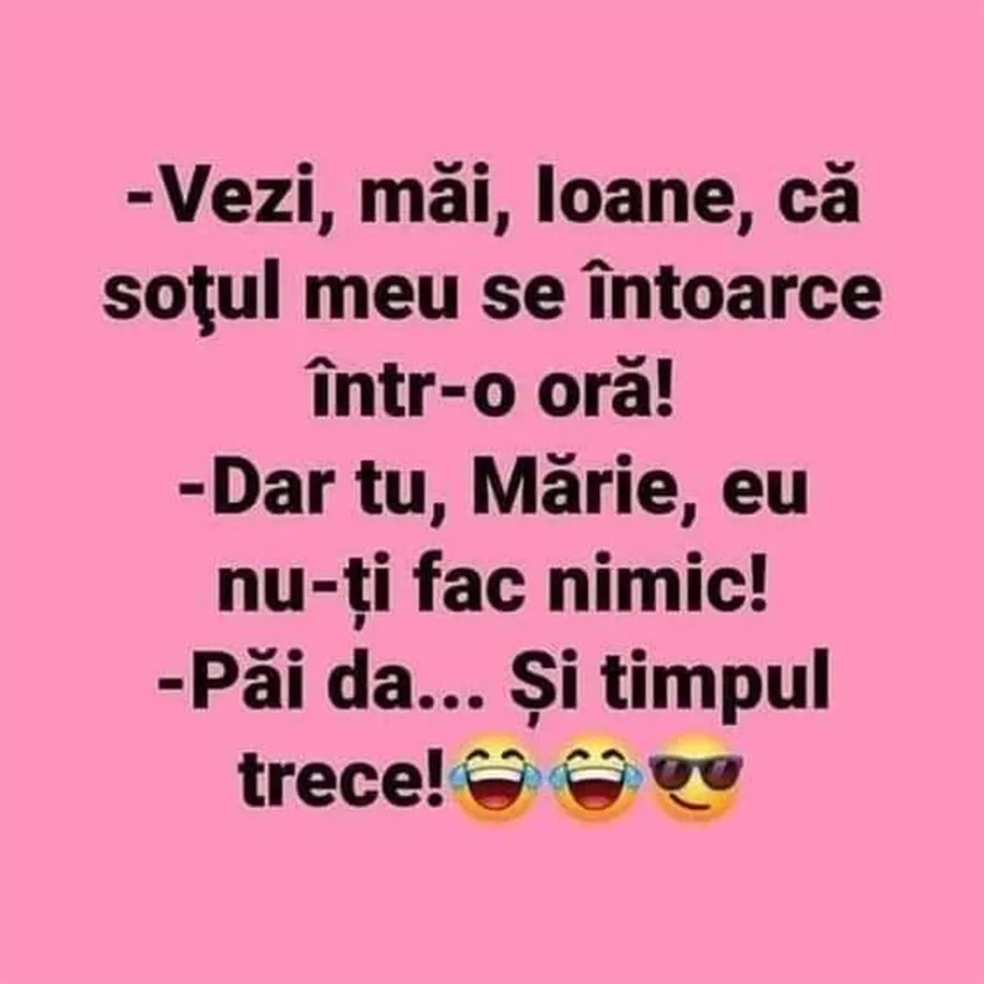 „ – Vezi, măi, Ioane, că soțul meu se întoarce într-o oră!