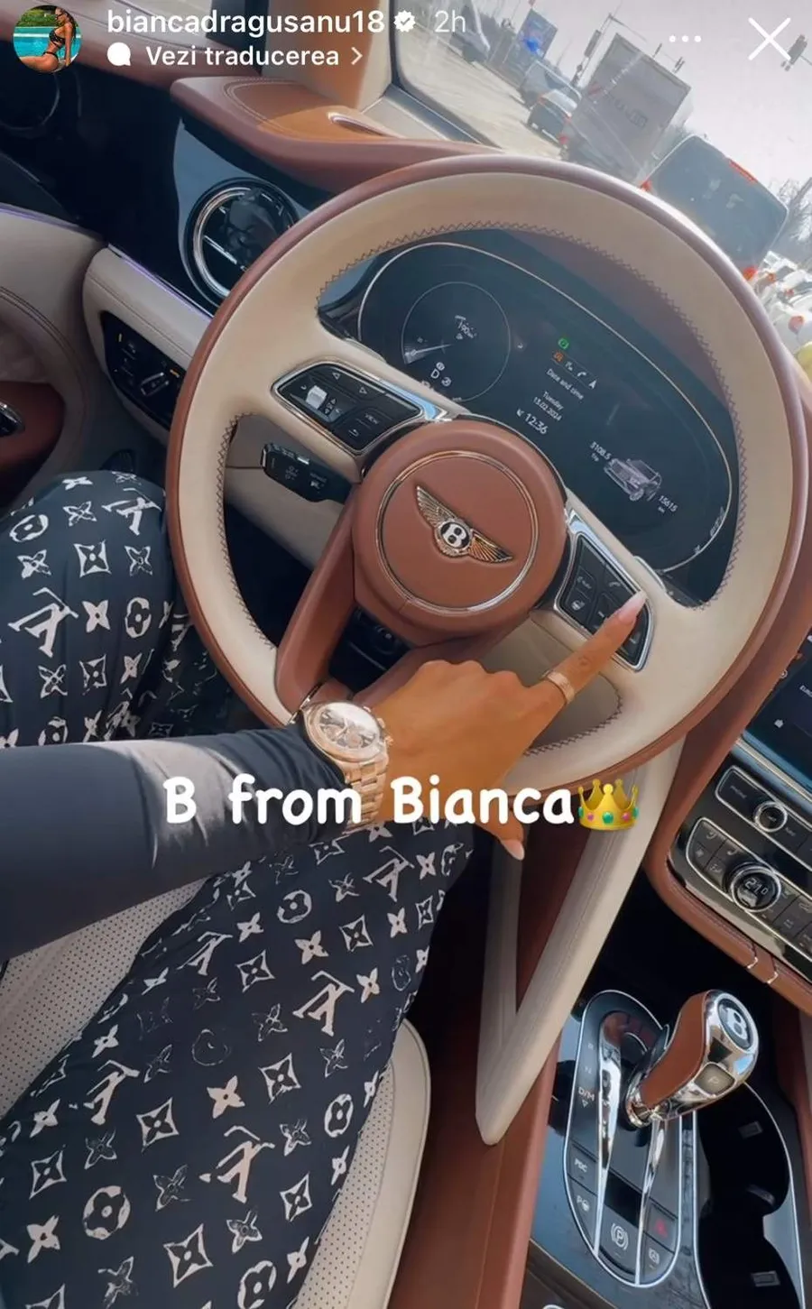 Bianca Drăgușanu, la volanul unui Bentley
