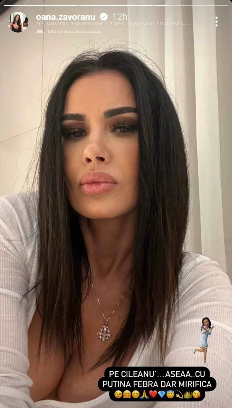 Bruneta este extrem de activă pe rețelele de socializare, loc în care le spune fanilor tot ce se întâmplă în viața sa, cu bune și cu rele. Zilele acestea, le-a mărturisit și că a picat „victima” unei răceli sezoniere, care a acaparat mai mulți români. Cu febră și simptomele specifice, dar machiată, nu este deloc în apele sale, așa cum se poate vedea și în imaginea pe care a postat-o.