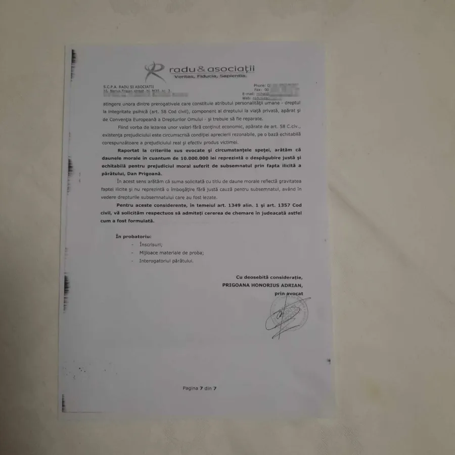 Fiul regretatului Silviu Prigoană solicită daune morale în valoare de 10 milioane de lei, argumentând că atacurile publice ale unchiului său au afectat grav drepturile sale fundamentale. Acesta subliniază că suma nu reprezintă o „îmbogățire fără justă cauză”, ci o despăgubire echitabilă pentru prejudiciul suferit.