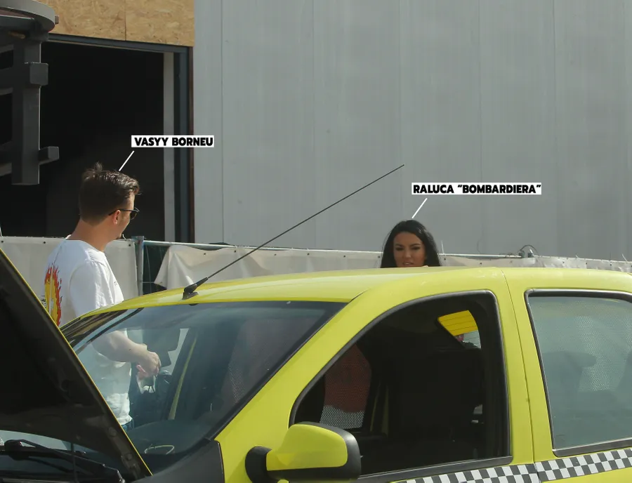 După câteva minute de așteptare, când micuța mașină comandată de Raluca și-a făcut apariția, cei trei s-au suit în autoturism și s-au îndreptat către un complex commercial din zona Băneasa, acolo unde ar locui Vasyy Borneu.