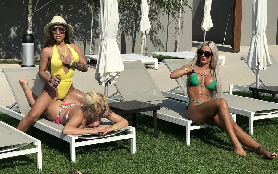 Îmbrăcate în cele mai sexy costume de baie, vedetele au pus pe jar masculii care se aflau la piscină. După ce s-au bălăcit minute bune, starletele au oferit unul dintre cele mai incitante momente atunci când s-au retras pe un șezlong și și-au uns trupurile cu loțiune de plajă.