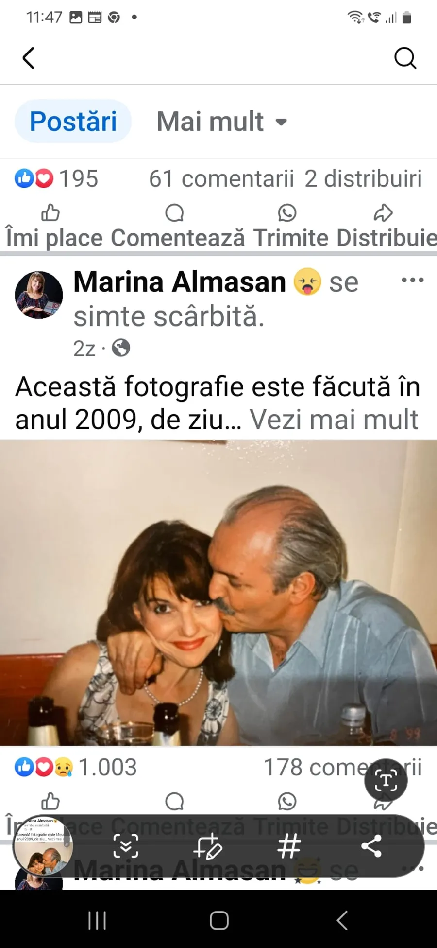 Marina Almășan postase, în urmă cu două zile, fotografia cu ea și Victor Socaciu, însoțită de următorul mesaj: