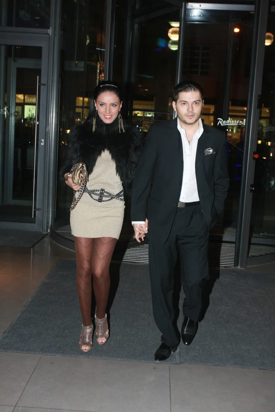 Deasupra, o rochie cu sclipici suficient cât să reflecte luminile oricărui local din Bucureștiul anilor 2000, peste care tronează, ca o declarație de forță, un ham cu ținte de rocker rătăcit printr-un videoclip de manele. Geanta cu imprimeu de zebră pare să spună „mai am puțin și intru în junglă”, iar cureaua cu lanț a genții confirmă că subtilitatea nu era invitată la această petrecere. Haina de blană neagră adaugă dramatism, iar cerceii, mari și grei, par a aparține unei dansatoare orientale aflată în pauza dintre două numere.