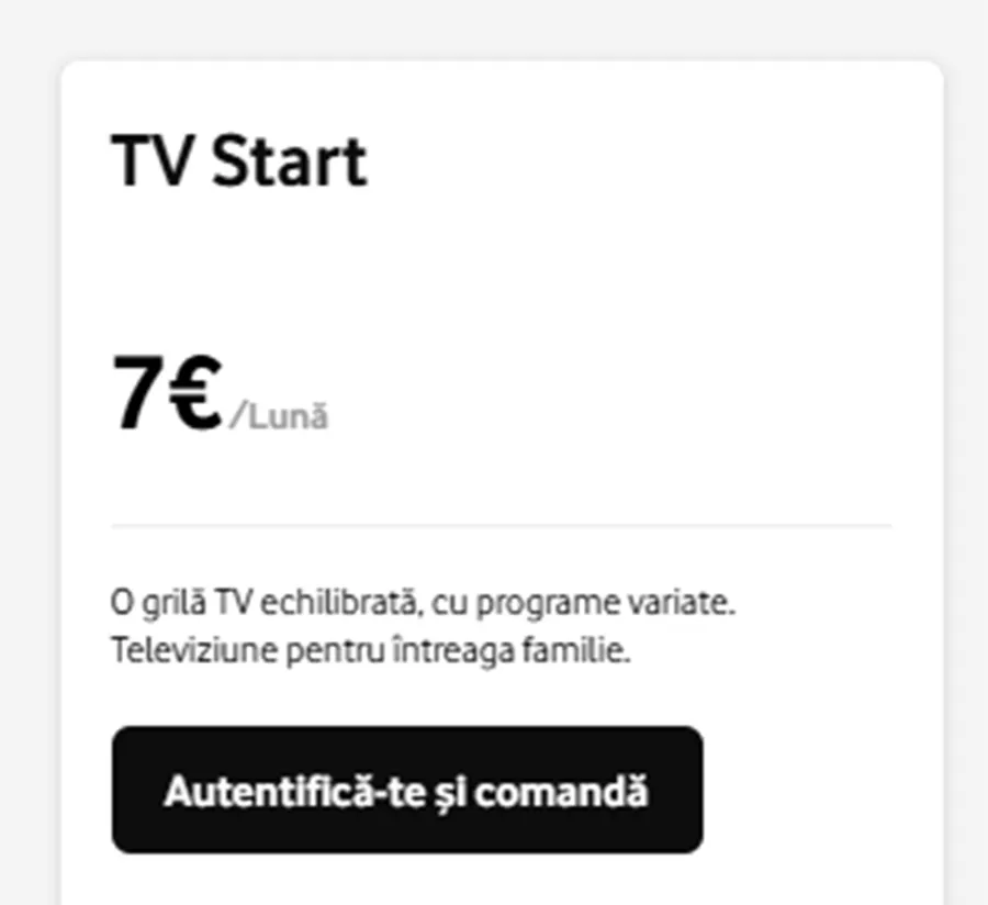 De cealaltă parte, Vodafone oferă un pachet similar ca număr de canale și servicii, dar la un preț puțin mai ridicat. Abonamentul de bază costă 7 euro pe lună, echivalentul a 35 de lei, ceea ce îl face mai scump cu 5 lei față de oferta Digi.
