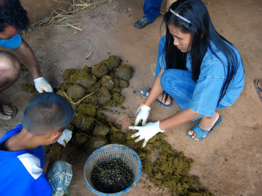 Oamenii caută boabele de cafea în excrementele elefanților
