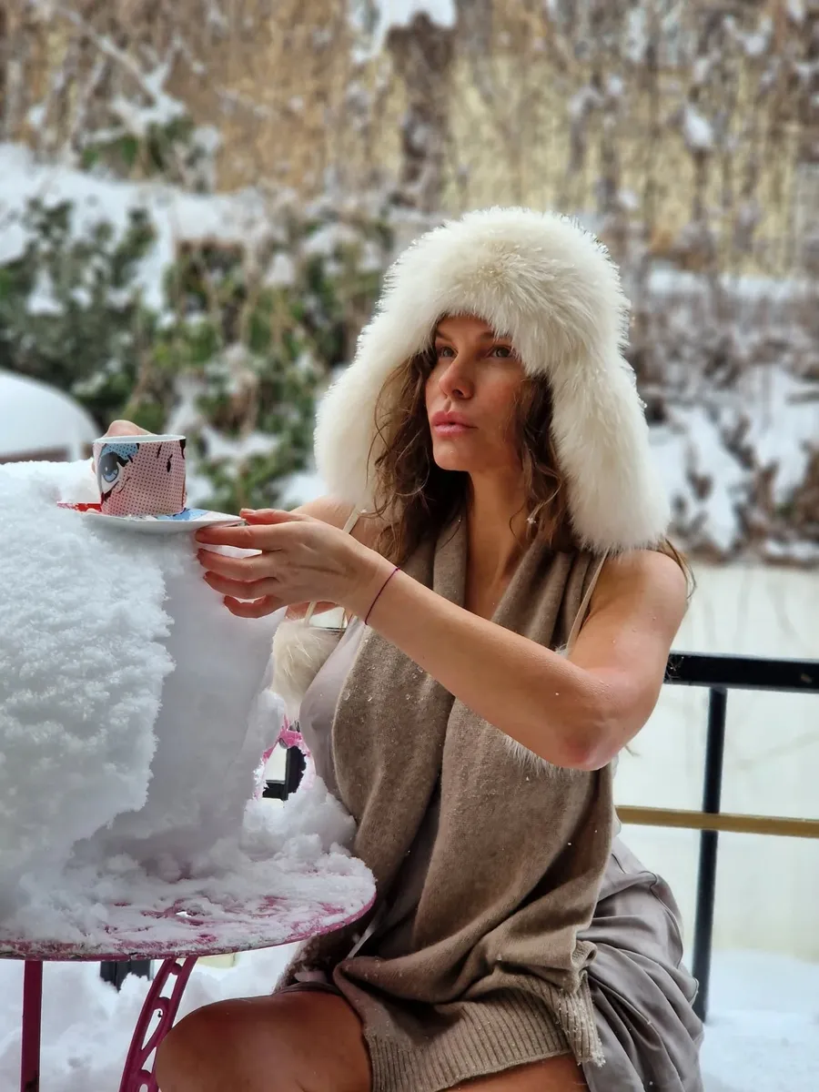 La începutul acestei luni, artista și-a savurat cafeaua sumar îmbrăcată, la temperaturi cu minus, înconjurată de zăpadă.