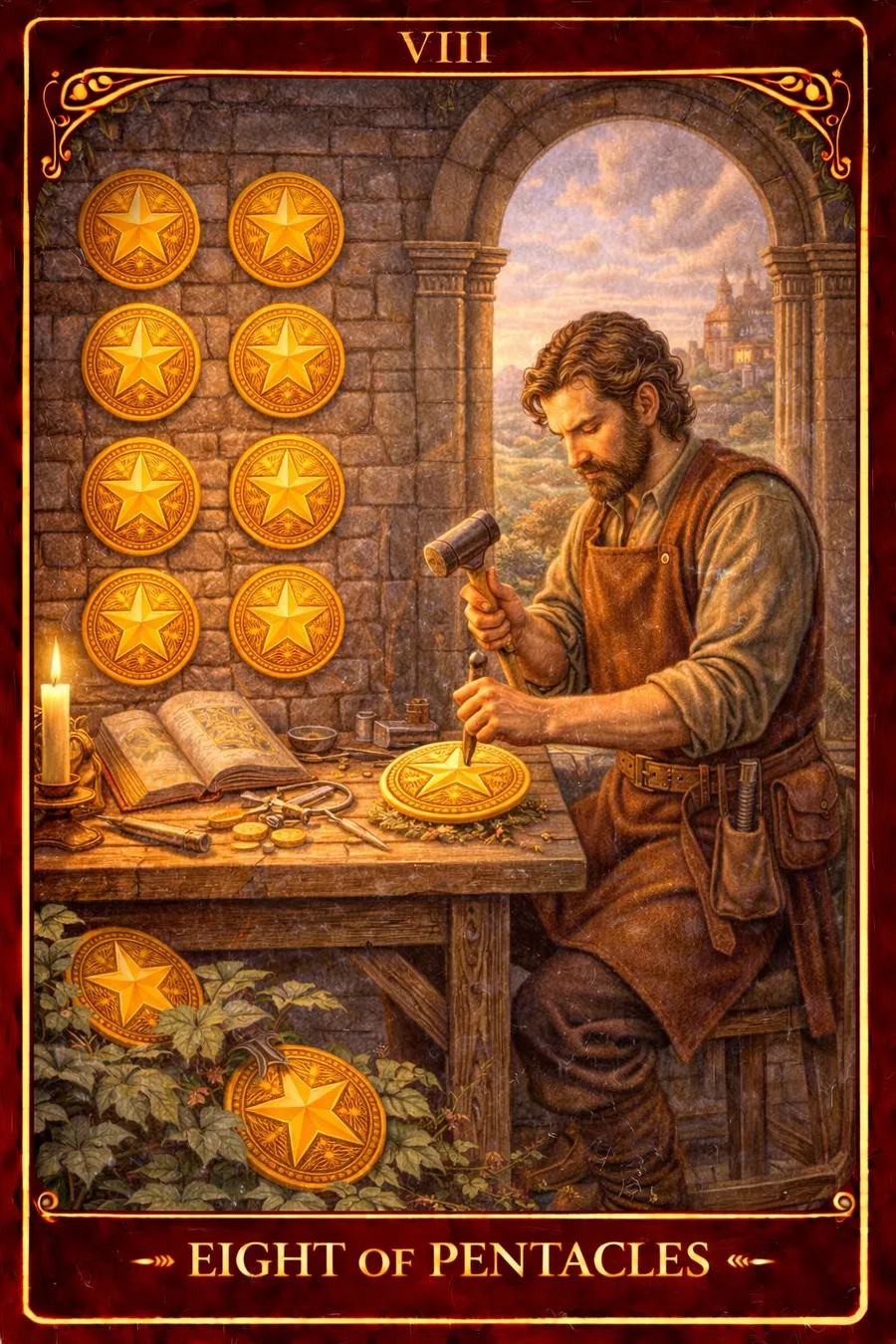 Cartea de Tarot a zilei de 30 decembrie 2025. Cartea zilei, Opt de Monede, aduce un mesaj clar: succesul nu vine peste noapte, ci se construiește pas cu pas, prin muncă, răbdare și perseverență. Este o zi ideală pentru concentrare, perfecționare și asumarea responsabilității față de propriul drum. Tot ce investești astăzi în tine se va întoarce, mai devreme sau mai târziu, sub formă de rezultate concrete.