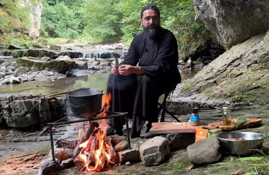 Pe marginea râului, la Băile Olănești, într-o liniște care pare desprinsă din paginile unei povestiri duhovnicești, părintele Dimitrie pregătește o mâncare simplă și binecuvântată: cartofi pustnicești la ceaun. Este o rețetă de post hrănitoare, făcută din ingrediente puține, dar pline de gust.