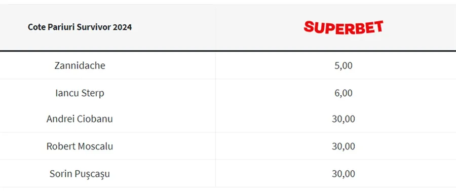 Faimosul este urmat la mica distanta de Iancu Sterp, cu 6.00 la 1 șanse de a pune mâna pe marele premiu. În ceea ce îi privește pe Robert Muscalu, Andrei Ciobanu și Sorin Pușcaș, cei trei sunt la egalitate cu o cotă de 30.00.