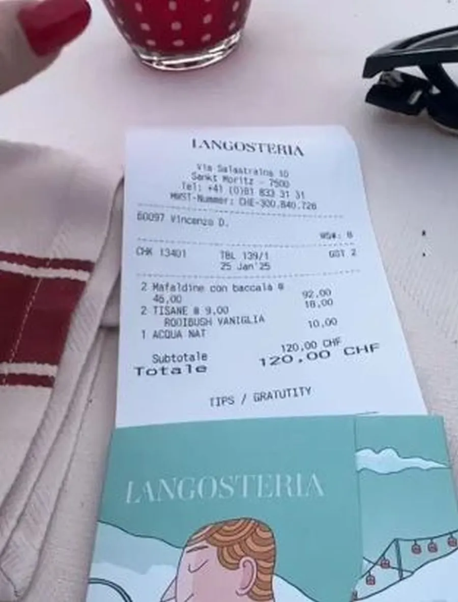 Românca a comandat două porții de paste Mafaldine con baccala, două ceaiuri și o apă, iar când a venit nota de plată a crezut că nu vede bine. Nota e plată a costat 120 de franci elvețieni, adică aproximativ 130 de euro (650 de lei).