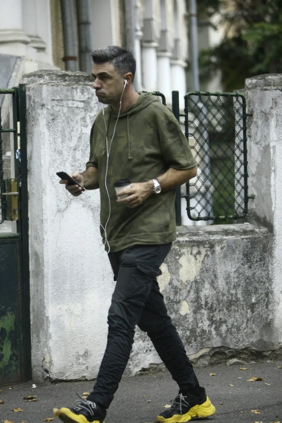 Proaspătul burlac s-a îmbrăcat cu cele mai comode haine din garderobă, și-a luat o cafea la purtător, să se învioreze probabil, căștile în urechi, conectate, desigur, la muzică pe telefon și a început să se plimbe, aparent, fără o destinație anume. (CITEȘTE ȘI: De ce a divorțat Cornel Ilie de soția lui. Eliza și-a anulat nunta cu un alt bărbat pentru a fi cu artistul)