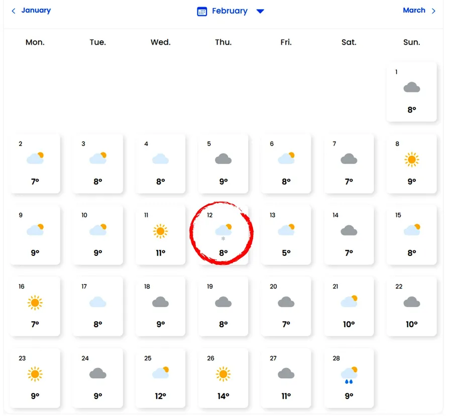 Prognoza meteo pentru luna februarie, în București/ Sursa foto: Easeweather