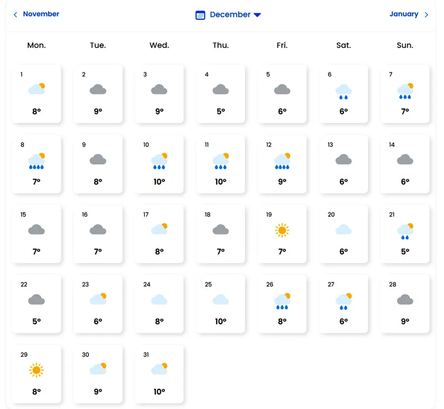 Prognoza meteo pentru luna decembrie, în București/ Sursa foto: EaseWeather