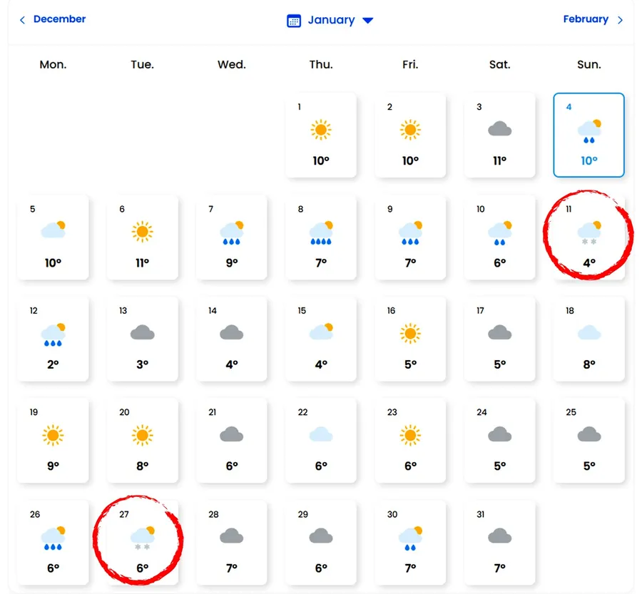 Prognoza meteo pentru luna ianuarie, în București/ Sursa foto: Easeweather