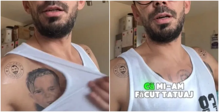 Mai exact, cele două tatuaje sunt poziționate fiecare pe câte un umăr. După ce „lucrarea” a fost terminată, tânărul și-a postat opera de artă pe TikTok și a făcut ravagii. Oamenii din mediul online au fost uimiți de gestul bărbatului, iar un val de reacții a început.
