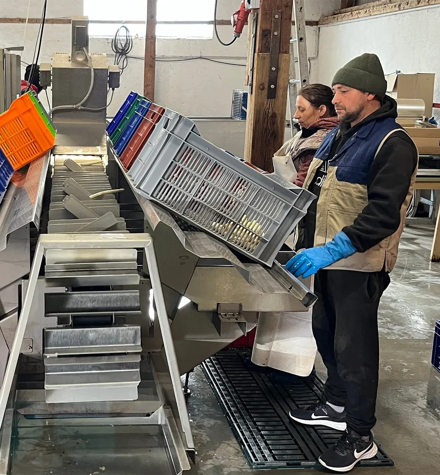 În același timp, Luminița are o responsabilitate la fel de importantă. Ea verifică fiecare tijă sortată de mașinile automate. Nu îi scapă nicio greșeală de clasificare sau curățare, motiv pentru care este apreciată de familia care conduce ferma.