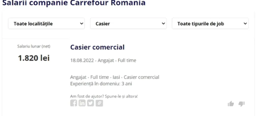 Câți lei primea salariu un român care lucra casier în supermarketurile Carrefour, înainte de instalarea caselor self-pay