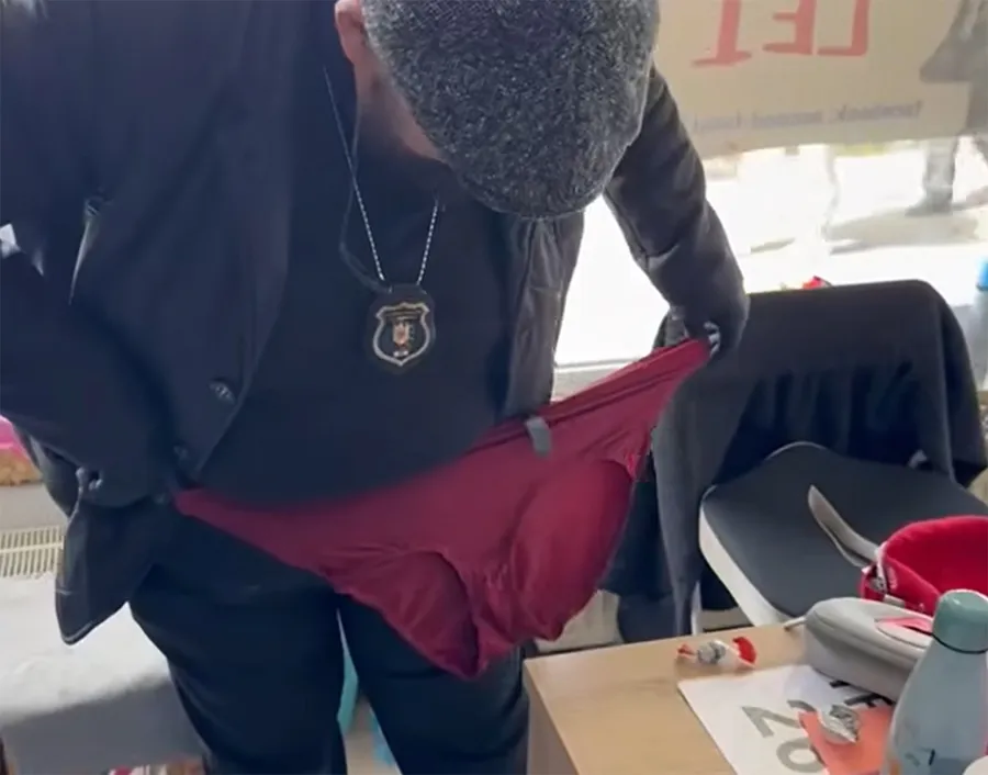 Fostul edil s-a uitat atent la fiecare haină pentru a se asigura că nu îi scapă nimic. În stilul său caracteristic, fostul edil a făcut și o ironie după ce a controlat mai multe articole de lenjerie intimă.