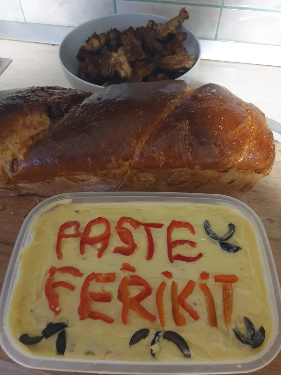 După ce a finalizat până și cele mai mici detalii, fără să se gândească la impactul major pe care îl va avea mesajul, gorjeanca a publicat pe Facebook mai multe fotografii cu salata. Alături de cozonac și friptura de miel, la loc de cinste se află o caserolă cu o salată de boeuf – ornată cu gogoșari murați – pe care este scris mesajul: Paște Ferikit !