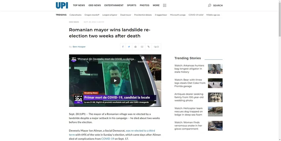 Bizara întâmplare din inima Olteniei nu putea trece neobservată peste hotare. Iată ce a scris presa americană despre realegerea la Deveselu a primarului mort de Covid-19.