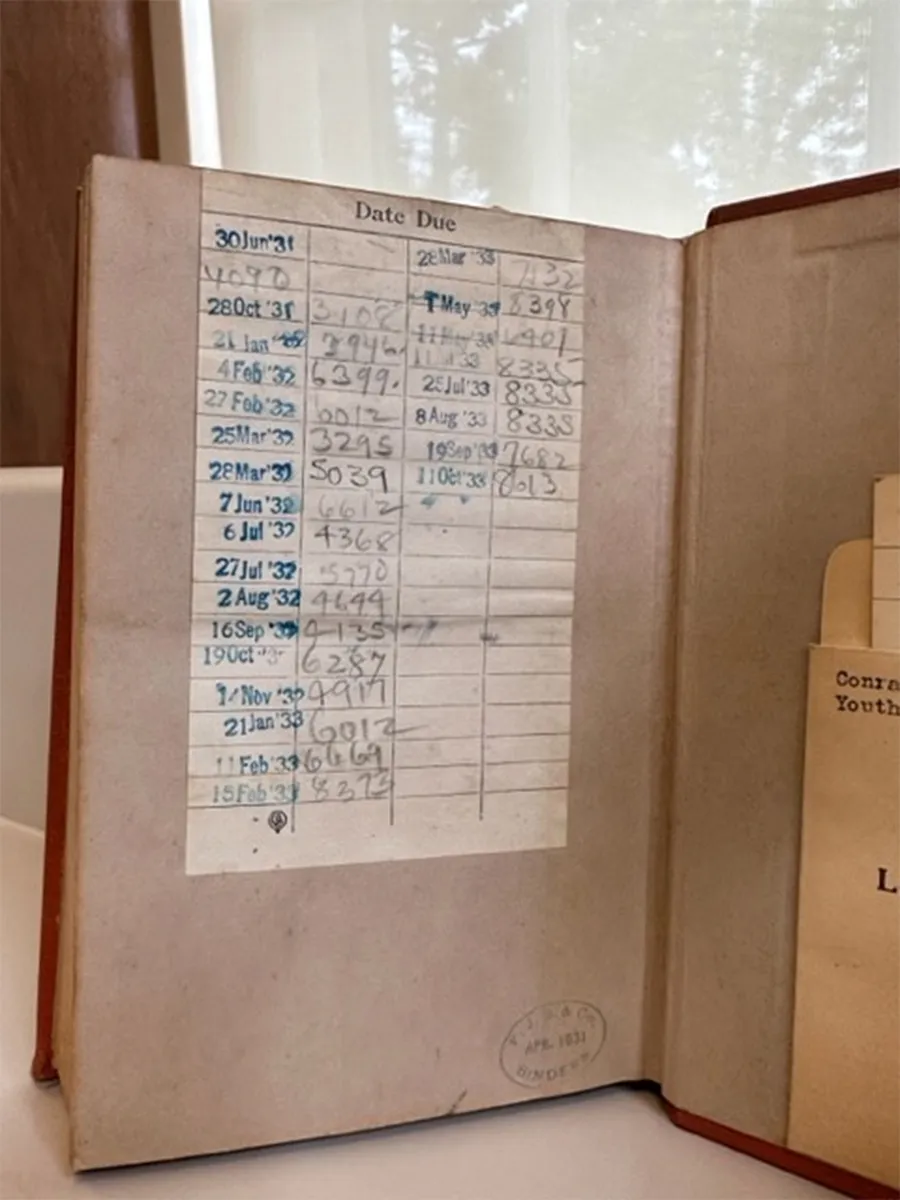 Joanie Morgan, o femeie din SUA, a făcut curățenie printre lucrurile tatălui său, după moartea acestuia. A găsit o carte care era împrumutată de pe data de 11 octombrie 1933. După 90 de ani, femeia a dus cartea la biblioteca de unde era luată. Era vorba despre un exemplar al cărții „Youth and Two Other Stories” din 1925 a lui Joseph Conrad.