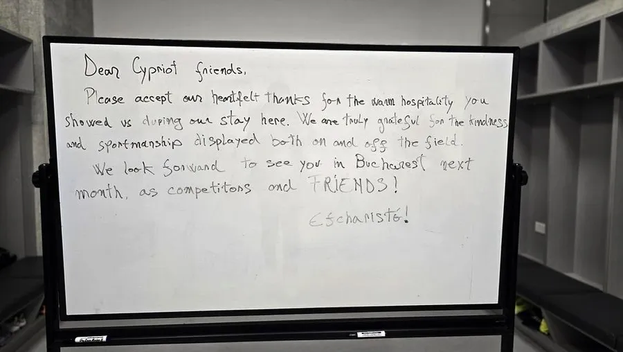 Tricolorii au obținut încă o victorie seara trecută și au învins cu scorul de 3-0, cele trei goluri fiind marcate de Dennis Man, Răzvan Marin și Radu Drăgușin. Înainte de a pleca, aceștia au ținut să le mulțumească gazdelor pentru ospitalitatea de care au dat dovadă, așa că fotbaliștii români le-au lăsat un mesaj în vestiarul stadionului AEK Larnaca.