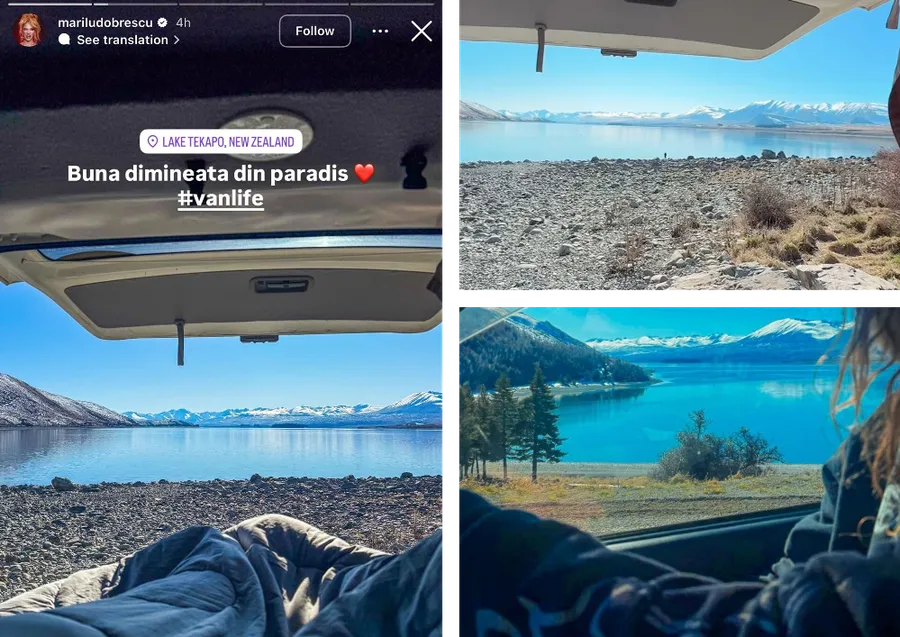 Recent, influencerița a ales să meargă în Noua Zeelandă alături de iubitul ei, la Lake Tekapo. Deși cunoscută pentru vacanțele sale de lux, roșcata a ales să adopte un stil mai simplu și modest, bucurându-se de peisajele de vis din dubă.