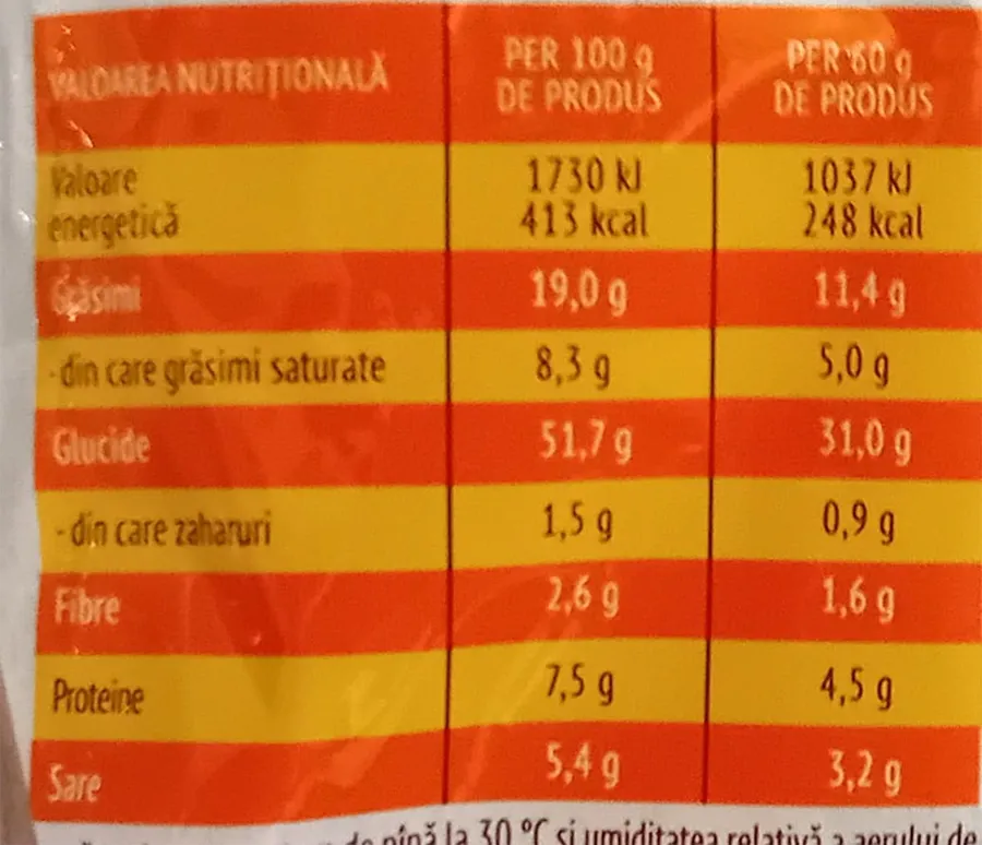 Ulei condimente (2,2%): Ulei de floarea sorealui rafinat, aromă, antioxidant: E 306.