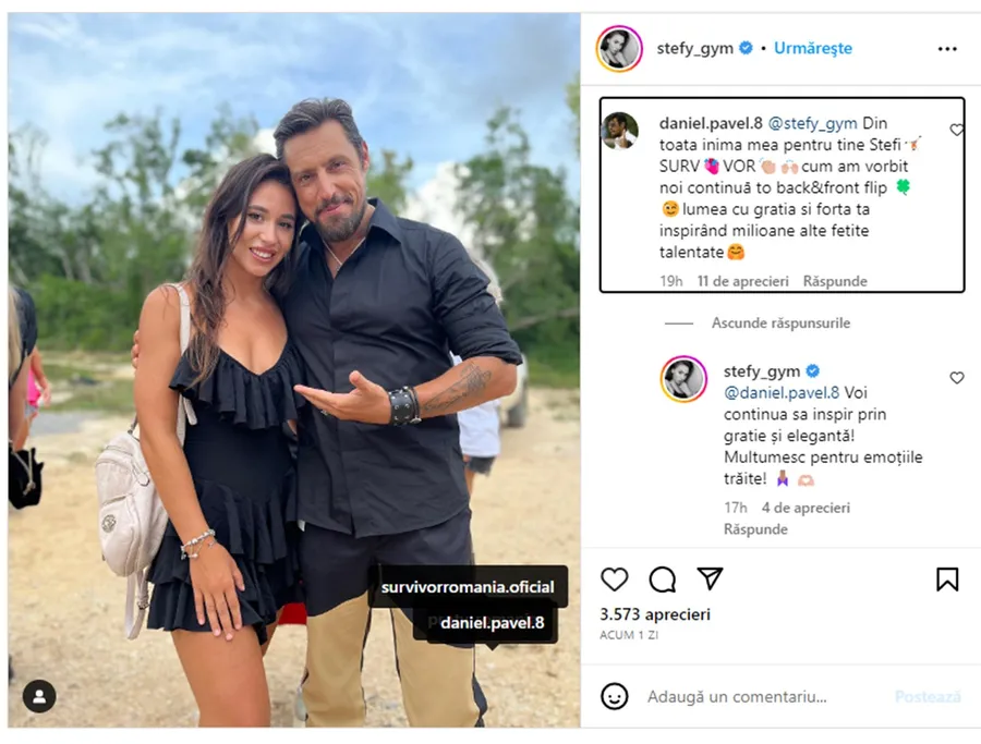 Dan Pavel a răspuns la mesajul scris de Ștefania Stănilă în mediul online. Prezentatorul show-ului de la Pro TV a ținut să îi transmită următoarele: „Din toată inima mea pentru tine, Ștefi! Survivor, cum am vorbit noi, continuă to back&front flip lumea cu grația și forța ta, inspirând milioane de alte fetițe talentate”.