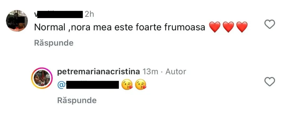 Lovitura finală a venit din partea Cristinei, care i-a și răspuns. Aceasta a ținut să-i lase un comentariu frumos fostei ei soacre. Mulți s-au întrebat dacă nu cumva cei doi și-au mai dat o șansă, pentru că mama lui Andrei îi spune „noră” Cristinei. Doar că, există posibilitatea să fie o simplă obișnuință, mai ales că aceștia au fost un deceniu căsătoriți.