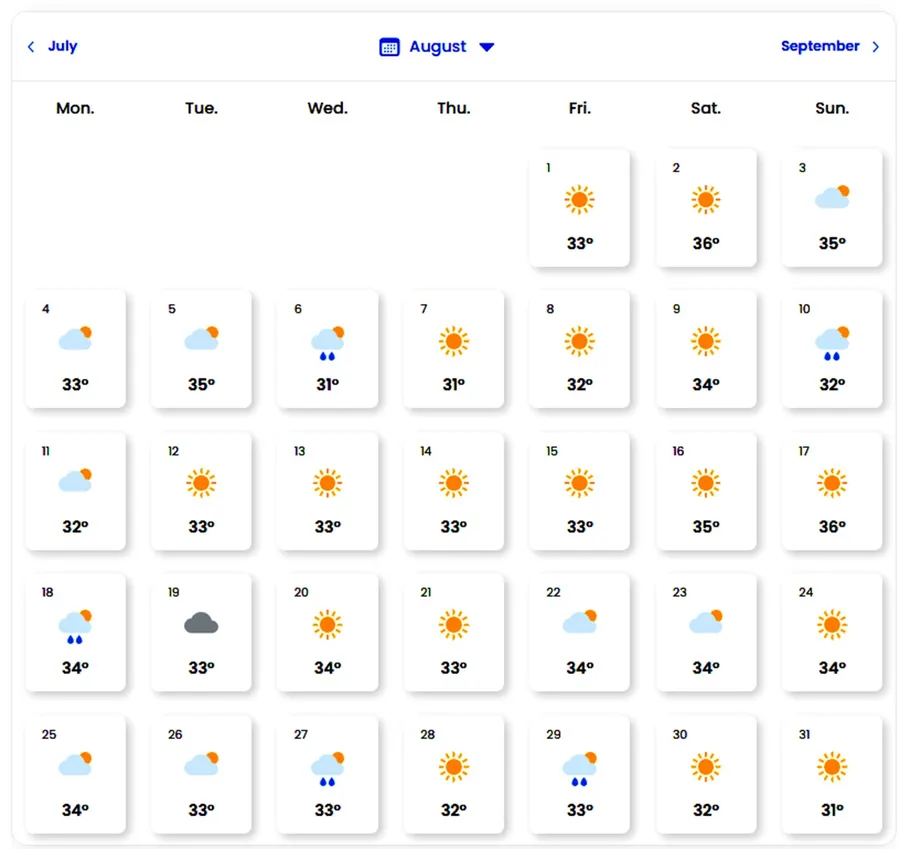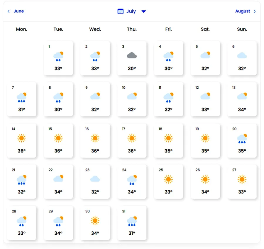 Luna iulie debutează cu ploi și valori termice de peste 30 de grade Celsius. În primele zile din lună sunt așteptate precipitații, vreme instabilă, cu maxime cuprinse între 33 și 36 de grade Celsius. Spre jumătate lunii, temperaturile vor crește semnificativ, ajungând și la 38 de grade Celsius. Iulie este, fără îndoială, cea mai caldă lună din vara anului 2025. Cu toate acestea, vor exista și câteva zile cu precipitații, atât la începutul lunii, cât și la finalul perioadei.