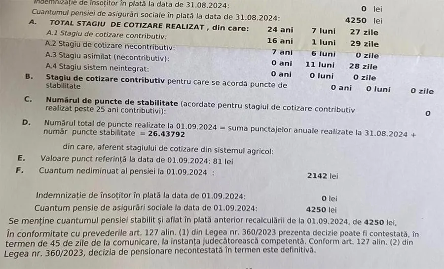 Așadar, pensionarul de mai sus are o pensie de 4.200 de lei. El are un stagiu contributiv de numai 16 ani și unul necontributiv de 7 ani. Astfel, acesta nu primește puncte bonus, ceea ce înseamnă că la recalculare i se iau în calcul numai cele 26 de puncte contributive care se înmulțesc cu valoarea punctului de pensie de 81 lei. Ceea ce înseamnă că în urma recalculării a rămas cu o pensie de 2.142 de lei.